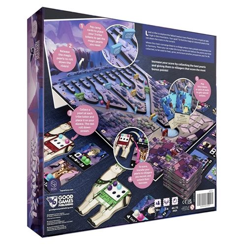 A tight and dramatic worker placement, pearl collection, goal chasing game. Feel the tension as you carefully place your tokens, and the drama as you release the pearls to roll down the board into players’ tribe tokens. Collect pearls one by one, releasing the remainders to roll further down river.