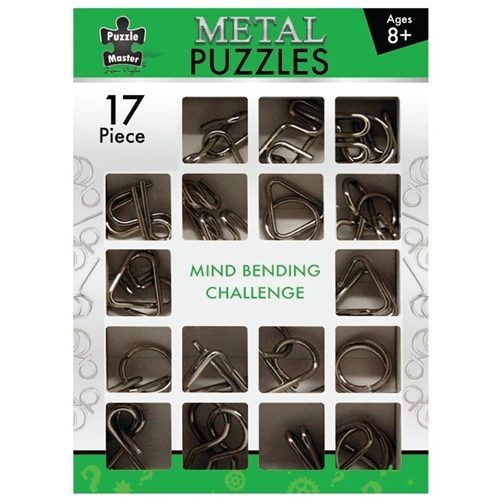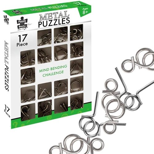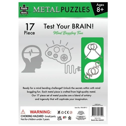 Ready for a mind bending challenge? Put your problem-solving skills to the test with the Puzzle Master 17 Metal Puzzles set! Featuring 17 unique metal puzzles, each offering its own tricky challenge, this collection is perfect for puzzle lovers aged 8 and up. Whether you're a seasoned puzzle solver or just love a good brain teaser, this set guarantees hours of engaging, mind-bending fun!