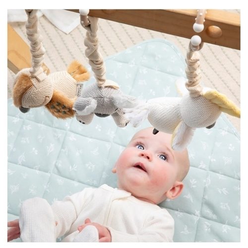- Attaches to prams, strollers, play gyms and car seats