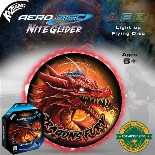 Kazaang's newest Areo Disc collection will light up the skies, fusing an innvoative high-tech design with an out-of-this-world style! This light and stylish frisbee features 36 bright blue LEDs and a powerful graphic of Dragon's Fury. This is an ultimate flying disc that lights up for the perfect night-time game.