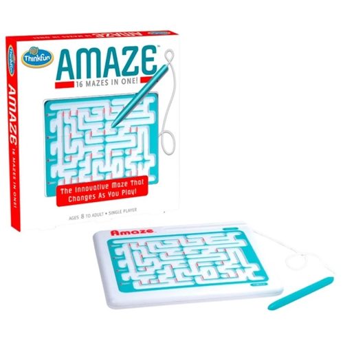 A maze that changes every time you play! Players must navigate this maze game using the attached stylus, pushing open movable gateways while avoiding traps and dead ends! An innovative twist on a classic maze game, Amaze’s diabolical shifting pathways change the solution path during play! With 16 unique challenges and no pieces to lose, Amaze is the ideal travel game!