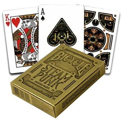 True Steampunk aficionados know it's okay to mix metals-which is why we added the Gold Steampunk Deck to our collection. From the shining, embossed tuck to the metallic look on the court cards, the Golden Steampunk Deck is evocative of its namesake's affinity toward shining cogs and intricate gears