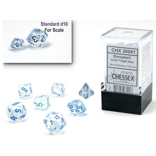 7 beautifully designed coloured dice by the specialist dice maker Chessex.