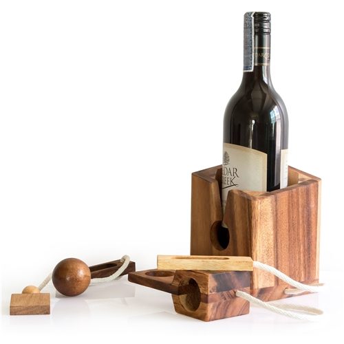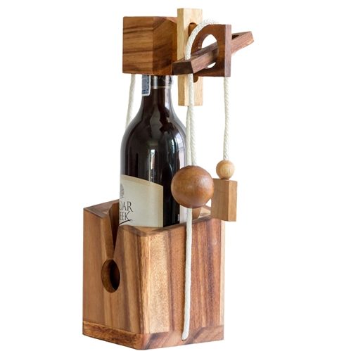 Solve the puzzle to free the bottle from the lock. Excellent gift for wine and spirits lovers!