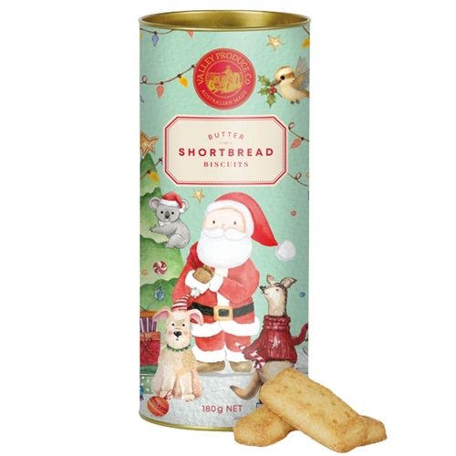 Bring a touch of buttery magic to Christmas gifting with this heartwarming Traditional Santa & Pets edition. Adorned with festive illustrations of Santa and his furry Aussie friends, this beautifully crafted tube is filled with buttery shortbread biscuits made in Australia. Perfect for spreading cheer to family, teachers, neighbours or anyone who loves Christmas, and a cuddle-worthy pet or two.