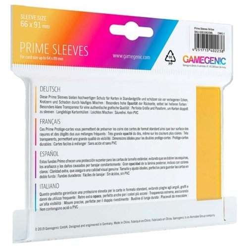 Card Sleeves (66x91mm) Standard Prime 100 Pack YELLOW by Gamegenic