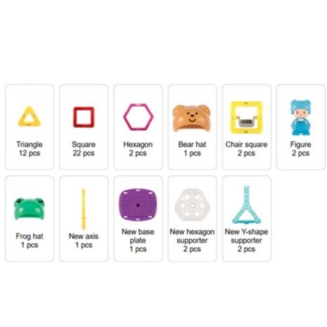 Hexagon clip-on panels spin vertically and horizontally and there are two cute detachable characters with interchangeable helmets (previous set characters were fixed in). An instruction booklet and guide shows how to make 13 different carnival rides.