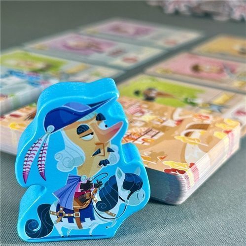 Players will take turns recruiting characters from 2 open markets on the table. Each character has a different ability and endgame scoring conditions. Cards must be placed in a 3×3 grid, and the position of each character may be the difference between victory and defeat!