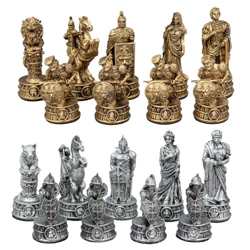 Transport yourself to ancient Rome with the Dal Rossi Italy Roman Chessmen. Each piece in this set is intricately designed to reflect the grandeur of Roman civilization, from the mighty Caesar to the valiant legionaries. Crafted with attention to historical accuracy, these chessmen offer a unique and educational playing experience. Perfect for history lovers and chess enthusiasts, this set brings the power and prestige of ancient Rome to your chessboard.