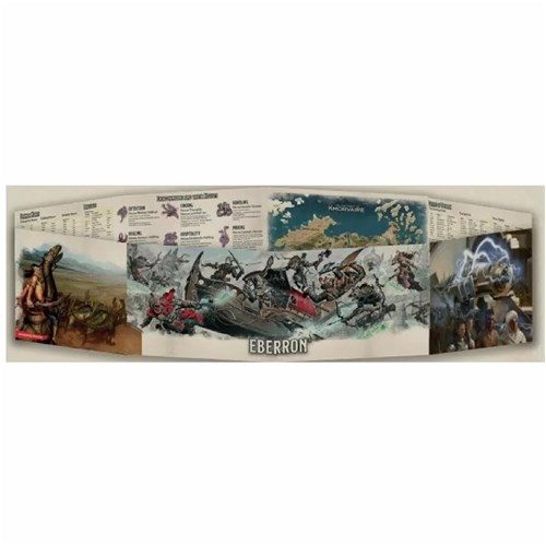 Designed specifically for use alongside Eberron, this new Dungeon Master Screen is the perfect guide to Khorvaire. Containing Dragon Marks and their houses, the Deities of Eberron, Goods and Services and a list of Common Names, this screen will help you bring the world of Eberron to life.