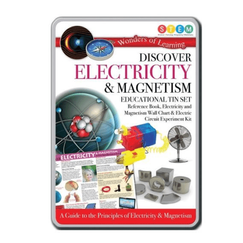 This STEM kit includes a 32 page reference book, wall chart and an electric circuit experiment kit. This set provides a captivating insight into a variety of principles of electricity and magnetism and how we have harnessed electromagnetism to create some of the everyday devices we know so well.