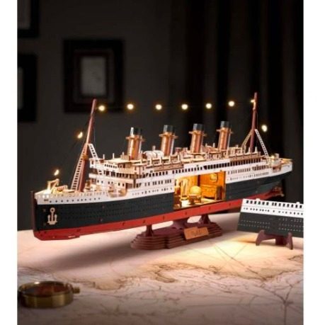 The doomed vessel Titanic sails onto your countertop with this uniquely detailed model replica of the full-scale vessel. Crafted delicately from wooden pieces, this recognisable former monarch of the seas can be assembled without the need for glue, and comes with an openable side compartment to reveal an unassuming but time period accurate sitting room aboard the ship.