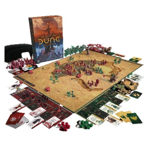 This is an asymmetrical strategy game that encourages players to fight for control of the planet by manevuering troops, harvesting Spice, and challenging mighty Sandworms. Familiar factions from the Dune universe, like the Fremen, Fedaykin, and Sardaukar, will immerse players deep in the action. A dynamic action dice system and several event cards will enable players to retell the sage of Dune differently in each playthrough.
