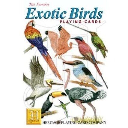 This standard deck of playing cards displays a range of beautifully illistrutated exotic birds on each card.