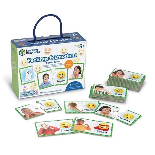 Match & Solve Puzzles: Each of these self-correcting learning puzzles encourages kids to match emotion words and emoji-style faces with pictures of those feelings in action!