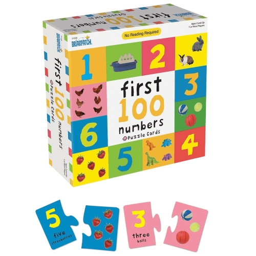 Introduce children to numbers with this fun puzzle matching game! The First 100 Puzzle Cards combine words, images and numbers from the bestselling First 100 book series. With self-correcting puzzle pieces, players join 24 tiles to create 12 number and image pairs. Through fun and simple play, children build confidence, develop find motor skills and learn about counting and number recoginition. Includes 24 Puzzle Cards (12 Interlocking Pairs) and Instructions.