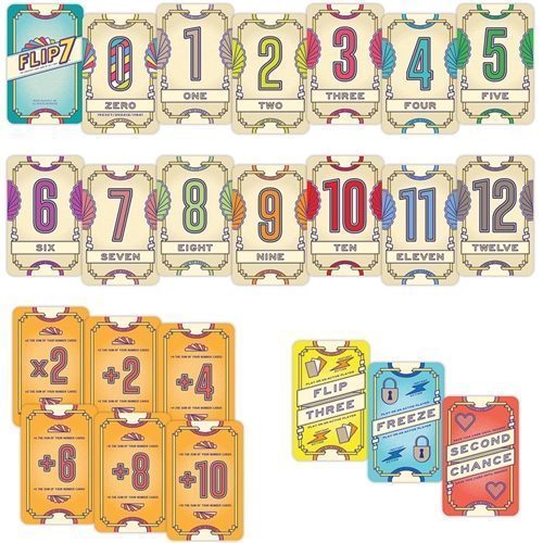 This isn't just any deck of cards. In Flip 7, there's exatly one 1 card, two 2's, three 3's, etc. Not to mention the host of cards that multiply your score, give you a SECOND CHANCE or freeze you in your tracks. Are you the type of player to play it safe and bank points before you bust, or are you willing to risk it all for glory?