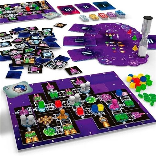 In the fast and goofy family game Galaxy Trucker, players begin by simultaneously rummaging through the common warehouse, frantically trying to grab the most useful component tiles to build their spaceship — all in real-time.