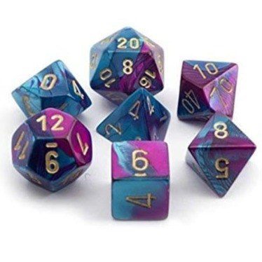 7 beautifully designed glittery dice by the specialist dice maker Chessex.
