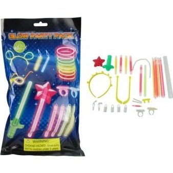 Level up your party game with this set of assorted glowsticks and accessories. The 40 included pieces allow you to make all kinds of shapes and objects, like bracelets, stars, swords, eyeglasses, hair pins and more.
