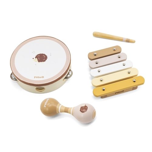- Includes a hedgehog-shaped xylophone, cymbal, and drum