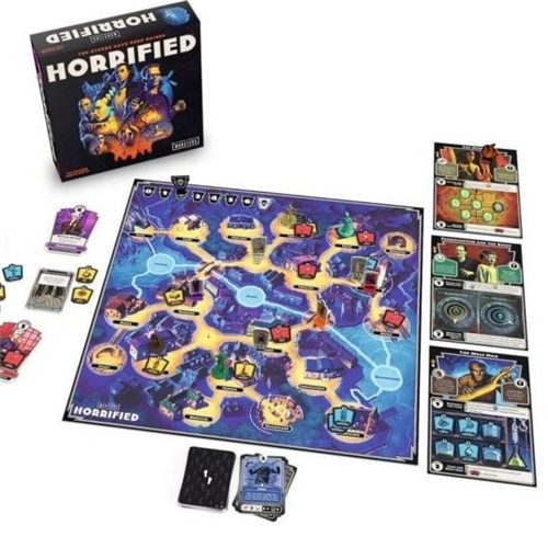 Horrified includes high-quality sculpted miniatures (Frankenstein, The Bride of Frankenstein, The Wolf Man, Dracula, The Mummy, The Invisible Man, Creature from the Black Lagoon). Its innovative, easy-to-learn, cooperative gameplay has players working together against the monsters with varying levels of difficulty. Just as each monster is unique, they require different strategies and tactics to be defeated.