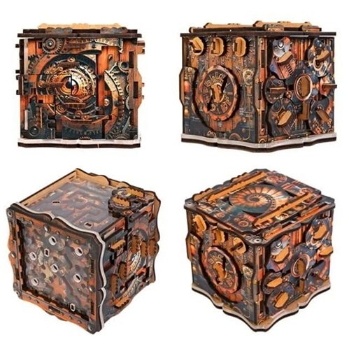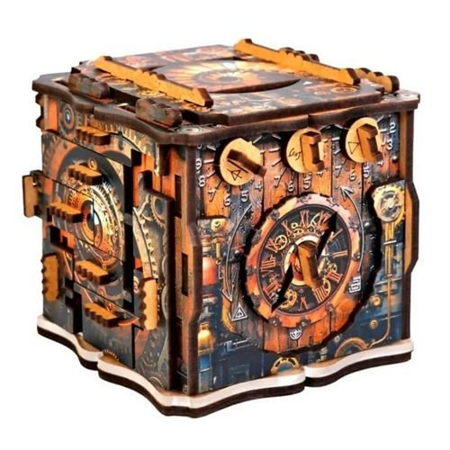 Solve a series of clever mechanical puzzles to unlock the hidden compartment inside – ideal for storing a small keepsake or personal note.