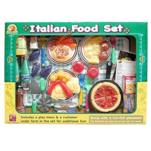 My resturant set comes with cut out placemat & a play menu & a customer order form and so much food.