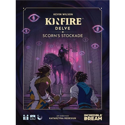 Kinfire Delve: Scorn's Stockade is a tactical and cooperative card game for 1-2 players. As Seekers, you will fight your way through the Well deck of challenge cards to reach Scorn, the Master of the Well, and face him in an epic final battle.