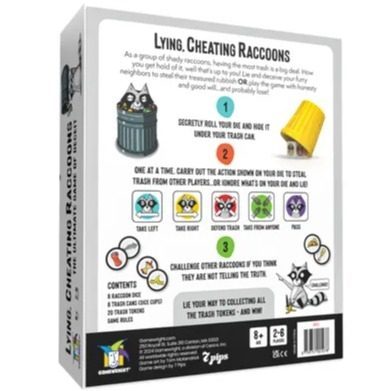 Embrace your inner trash panda as you become a group of shady, lying, cheating raccoons! To you, having the most trash is a big deal, and the main goal of your life (and the game)! How will you get a hold of your trash riches? Will you decieve your fuzzy neighbours and steal their treasures, or play the game with honesty and kindness… and probably lose!
