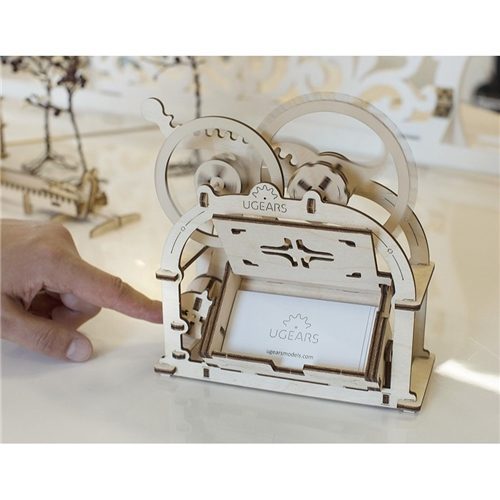 A gorgeous, yet functional, form of storage, the UGEARS Mechanical Box can bring a little bit of character into your office or home. Opened by pushing the lever on it’s side, the Mechanical Box is perfect for holding business cards or plastic model cars. The UGEARS set comes equipped with two removable panels – one that includes a small cut-out for business cards, and one without.
