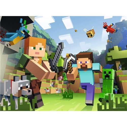 Jump into the world of Minecraft by Steve and Alex's side, befriending parrots, bees, and dogs along the way in this fantastic Minecraft puzzle by Ravensburger!