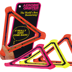 This is the Boomerang version of the classic Aerobie. Its innovative design mans that it really dows come back to you, making it perfect for solo play. It's rigid core and sofe edges make throwing and catching a pleasure.