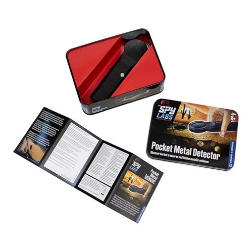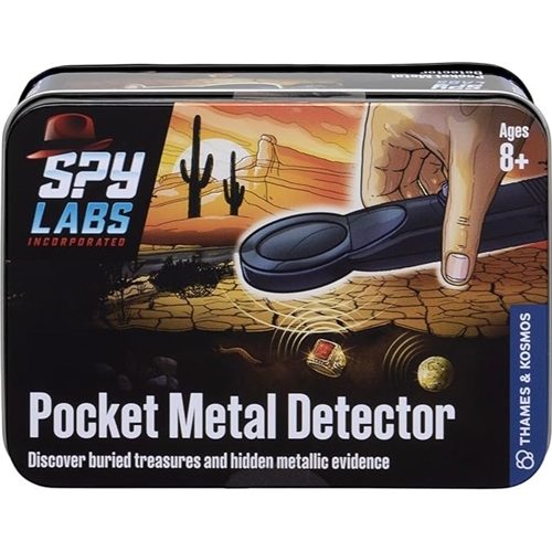 As a detective, you need the right equipment for when you are on the hunt for evidence. Grab the Pocket Metal Detector when you are looking for metallic objects. If any metallic clues or pieces of evidence are hiding nearby, your Pocket Metal Detector will help you find them. This Spy Labs tool will detect metal through other materials like thin layers of soil, fabric, or paper and alert you with an audible beep. Let the hunting begin!