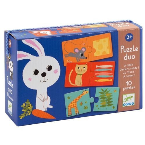 Made from sturdy cardboard, the Puzzle Duo set includes 10 2-piece puzzles.