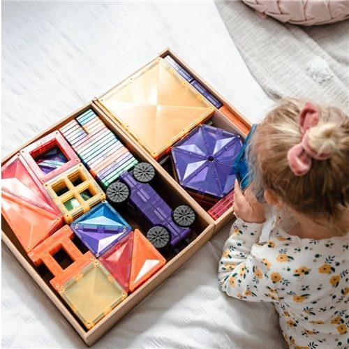 Connetix magnetic tiles are multi award winning Educational Toy sold in over 50 countries globally. Their innovative range of magnetic tiles, are expertly crafted with unique bevel design to promote creativity, motor skills development and exploration of STEAM learning through PLAY. They are Open-ended toys, helping develop a child’s imagination and creativity, and also growing WITH the child as they learn and develop and play becomes more evolved. The Connetix tile sets are quality products meeting all Australian child safety standards, that will last through many years of play. All tiles are ultrasonically sealed and riveted, made from non-toxic ABS plastic that is BPA and phthalate free for enhanced safety.