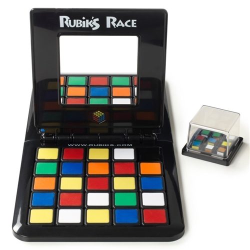 Shake it! Slide it! Solve it! A fast paced game to get your brain and fingers racing. Shake the scrambler and go head to head with your opponent to shift and slide the tiles.  Be the first to make the 3×3 centre match the pattern. Its sounds easy, but the Rubik’s Race is a real game of skill, speed and dexterity.