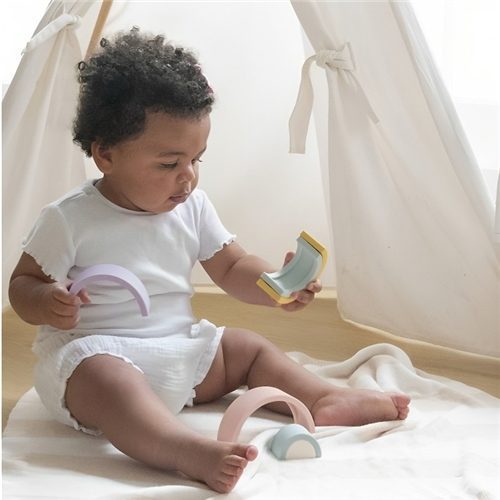Inspire creativity and develop your baby’s fine motor skills with this fun rainbow shaped silicone puzzle. Providing sensory stimulation for developing minds, each piece is made from BPA-free, food grade silicone making it a great teether toy too!