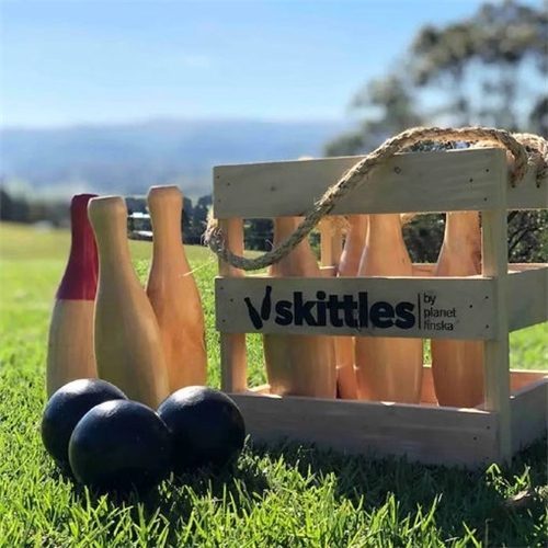 This handy crate of classic timber skittles will bring hours of fun to young and old.