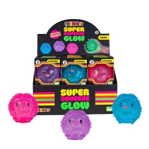 Get your hands on Smoosho's Super Squeeze Glow in the Dark Echidna! Its dynamic shape is ideal for firm, satisfying squeezes, with just the right balance of squishiness and strength. Turn off the lights and watch it glow! Mould it however you like, because no matter how slow, it will always return to normal.