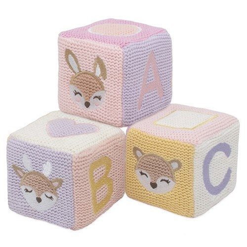 Develop baby's fine motor skills and hand-eye coordination with these knitted soft blocks. Made from 100% cotton knit and featuring exquisite embroidery detailing, baby will explore different animals, numbers, shapes and letters as they build their tower and knock it down. Presented in a gorgeous gift box, they are the perfect first blocks for baby and a beautiful keepsake gift.