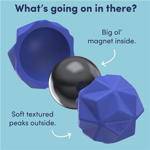 Made with textured silicone and a magnetic core, Odds offer a unique, satisfying palm-massaging experience. The magic of magnets make Odds super fun to fidget with, designed to be discrete, sneak them in anywhere to keep your hands busy and your mind focused. Or for a change of pace Odds double as high-bounce balls.