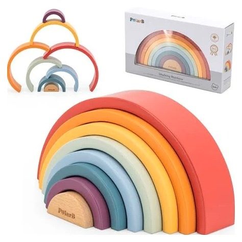 • Includes 8 silicone rainbow stacking pieces