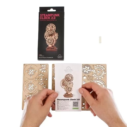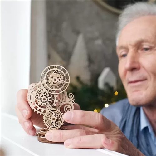 The Steampunk Clock 2.0 is rated "Easy" and has only 43 pieces, which makes it the perfect starter model for those who are new to the fascinating world of Ugears mechanical models, 3D puzzles, puzzle boxes, mechanoids and automatons. But even experienced modelers will want this attractive 3D puzzle for their collection. The model is made of high-quality composite wood, has a pleasant wooden scent, and looks great on the shelf.