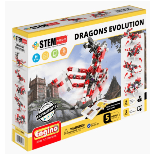This STEM Heroes kit introduces children into the world of STEM disciplines through a completely new and playful approach! Build 5 models! Phoenix Dragon, Pterosaur, Elder Dragon, Phaegal Dragon or Twinheaded Dragon