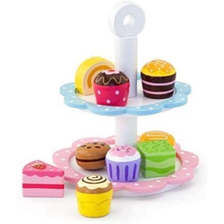 It comprises two layers, each crammed with as assortment of mini cakes and is just perfect for afternoon tea and any play kitchen! This is an excellent toy for role play.