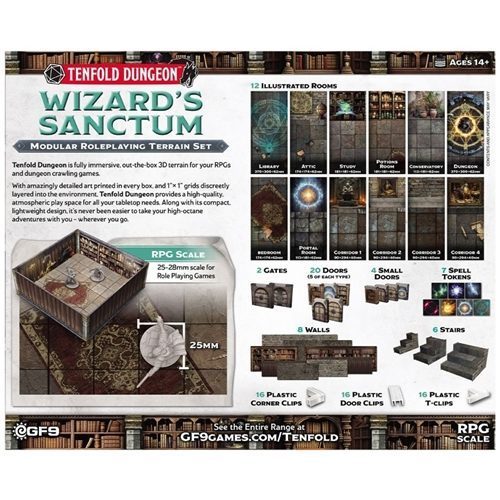 The TFD system provides a fully immersive, right-out-the-box 3D setting for your D&D, Pathfinder, Starfinder and many other RPG games. With amazingly detailed art printed in every box (inside and out), and 1×1” grids discreetly layered into the environment, Tenfold Dungeon provides a high-quality, atmospheric play space for all your tabletop needs.