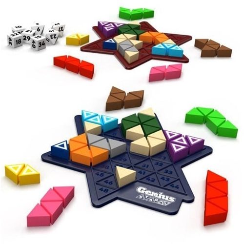 Significantly more challenging than The Genius Square, the aim of each of the 165,888 possible puzzles here is to complete the star using the eleven coloured shapes, once the seven blockers have been positioned. There will always be at least one solution. There's also a wonderful new twist to each challenge, in the shape of a Golden Star