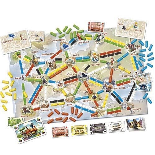 Climb aboard, travelers, your incredible first journey awaits! Based on the award-winning board game ticket to ride takes two to four adventurers across America by train introduce younger players to ticket to ride with simplified rules players race to finish six tickets before their fellow travelers fast-paced and less than thirty minutes to play.