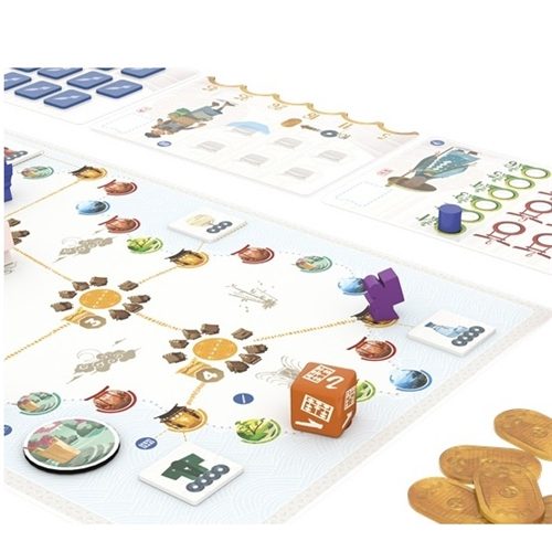 In Tokaido Duo, two players discover the smallest of Japan's four main islands, through a three-faceted spiritual journey. As the pilgrim, visit shrines, garderns, seashores, and hot springs. As the merchant, collect and selll traditional souvenirs. As the artist, paint a variety of beautiful vistas, and gift your paintings to locals.